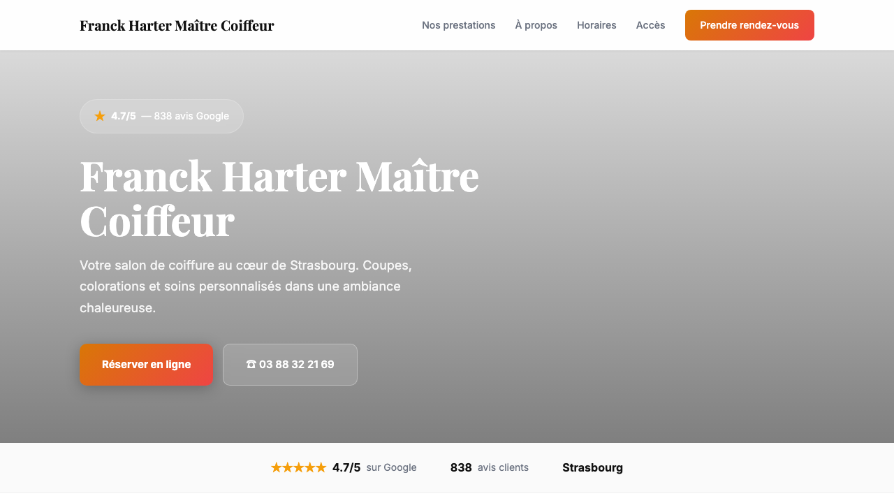 On intègre vos vrais avis Google, vos horaires et votre position Maps pour rassurer vos visiteurs.